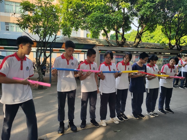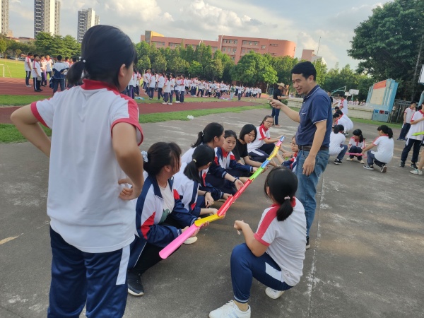 首先,初三年級的學(xué)生們在班主任的帶領(lǐng)下,懷揣期待與熱情,從教室下到操場,在跟班老師和班干部的協(xié)助下,以班級為單位分四組開展“珠行萬里”、“夾板接力賽”活動(dòng)項(xiàng)目?;顒?dòng)由此拉開了序幕,妙趣橫生的比賽環(huán)節(jié)營造了輕松愉快的氛圍,也讓學(xué)生們緩解緊張情緒,盡情地投入到活動(dòng)中來。