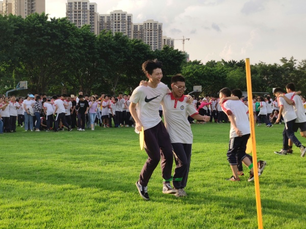 接著,進(jìn)行二人三足迎面接力賽,每個(gè)班級選取10位男同學(xué),10位女同學(xué)代表班級進(jìn)行比賽,最快到達(dá)終點(diǎn)的班級獲勝。隨著哨聲吹響,同學(xué)們便開始奮力沖刺,有的同學(xué)健步如飛,有的同學(xué)寸步難行,還有的同學(xué)步調(diào)不一,不慎摔倒,但是,他們沒有就此放棄,而是迅速爬起,重新調(diào)整隊(duì)形,繼續(xù)追趕對手。此時(shí)的同學(xué)們都將學(xué)習(xí)的壓力拋諸腦后,玩得不亦樂乎。