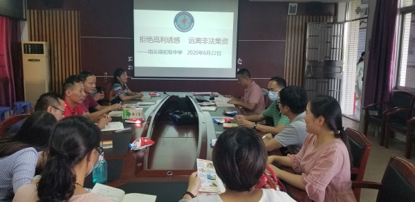 為使廣大師生認(rèn)清非法集資的本質(zhì)和社會(huì)危害,增強(qiáng)風(fēng)險(xiǎn)防范和投資損益自我承擔(dān)責(zé)任意識(shí),維護(hù)自身合法權(quán)益,建設(shè)文明和諧校園環(huán)境。6月22日,南頭鎮(zhèn)初級(jí)中學(xué)開展了以“守好錢袋子,護(hù)好幸福家”主題宣傳教育活動(dòng)。