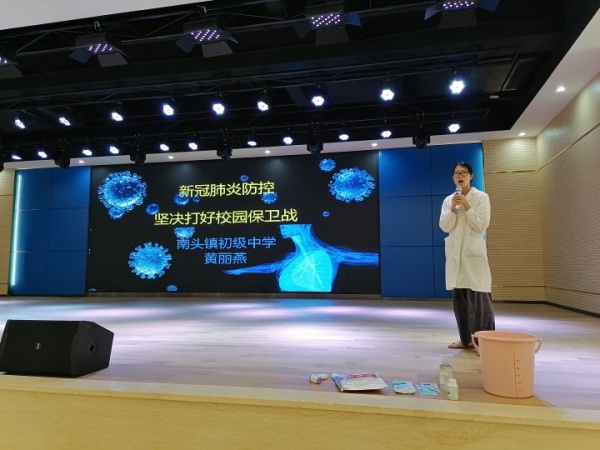 培訓(xùn)開始,盧新泉校長(zhǎng)發(fā)表講話。盧校長(zhǎng)首先肯定了前段時(shí)間,南頭鎮(zhèn)初級(jí)中學(xué)教師表現(xiàn)出的良好的精神風(fēng)貌與同心協(xié)力、同舟共濟(jì)的熱情。接著布置了下一階段的工作重點(diǎn)是防控工作,疫情重點(diǎn)在防,主要在于控,以及要積極開展返校工作。盧校長(zhǎng)強(qiáng)調(diào),我們要統(tǒng)一思想,提高認(rèn)識(shí),重視疫情防控對(duì)于學(xué)校管理的重要性,掌握新冠肺炎日常防控操作技能及新冠肺炎應(yīng)急處置措施,狠抓開學(xué)后的疫情防控工作管理,做足前期準(zhǔn)備,細(xì)化工作環(huán)節(jié),落實(shí)工作制度,未雨綢繆,精心安排,確保返校后學(xué)校正常的教育教學(xué)工作和疫情防控工作順利有效開展。接著,老師們觀看《突發(fā)疫情應(yīng)急處置演練》視頻,學(xué)習(xí)突發(fā)情況下的應(yīng)急處理方案。