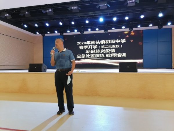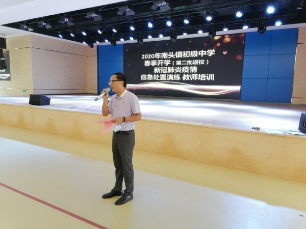 在第一批高三、初三學(xué)生順利返校,以及第二批師生核酸檢測(cè)完成的前提下,5月11日,中山市高一、高二,初一、初二學(xué)生返校,南頭鎮(zhèn)初級(jí)中學(xué)第二批教師于5月6日返校進(jìn)行工作準(zhǔn)備。2020年5月6日上午,南頭鎮(zhèn)初級(jí)中學(xué)開展第二批返校教師疫情防控培訓(xùn),初一、初二級(jí)全體教師參加培訓(xùn),培訓(xùn)由毛賢偉副校長(zhǎng)主持。