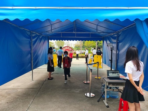 早上7點20分,升輝小學老師、同學們早早來到校園等待見面。為了確保安全,升輝小學4--6年級的學生錯峰回到了久別的校園。雖然早上下著毛毛細雨,但是絲毫沒有影響到同學們快樂復學的心情。在校門口,升輝小學的全體行政、班主任、老師及校醫(yī)早早到崗開展交通指引、測溫,指導學生保持1米安全距離入校。同學們分別通過手腕測溫儀、熱成像自動測溫通道文明有序地進入校門。各班級教室門口,都為同學們準備了洗手液、測溫儀等防疫用品,同學們安靜進入班級課室并與同學保持安全距離。