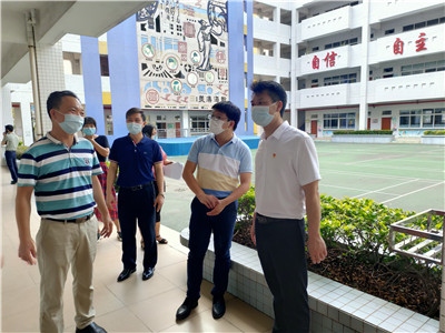 5月8日下午,根據(jù)《關(guān)于開展中山市2020年春季學(xué)期學(xué)生返校疫情防控第二、三批學(xué)校復(fù)檢、驗(yàn)收工作的通知》精神,南頭鎮(zhèn)紀(jì)委書記余漾、黨委委員薛焯明、副鎮(zhèn)長肖彥余、黨政辦副主任李純?nèi)A等南頭鎮(zhèn)返學(xué)工作領(lǐng)導(dǎo)小組到升輝小學(xué)對學(xué)生返校疫情防控第二、三批學(xué)校工作進(jìn)行預(yù)檢,升輝小學(xué)全體行政陪同預(yù)檢。檢查組重點(diǎn)檢查校園疫情防控物資保障、防疫制度及防疫宣傳教育落實(shí)等情況,并對教學(xué)樓、校門口、辦公區(qū)、校醫(yī)室、隔離留觀室等場所進(jìn)行檢查。余漾同志重點(diǎn)強(qiáng)調(diào),疫情防控的物資必須得保障到位,各個(gè)場所也要按照標(biāo)準(zhǔn)布置好相關(guān)的內(nèi)容;薛焯明同志也提出了兩點(diǎn)要求:一是學(xué)生返校各項(xiàng)工作必須認(rèn)真落實(shí)到位,責(zé)任到人,保證返校復(fù)學(xué)工作順利開展;二是注重師生的心理健康,對個(gè)別心理個(gè)案要建立一檔一冊,發(fā)現(xiàn)問題及時(shí)處理,保障師生的身心健康。