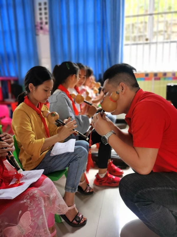 吳老師想既然來了總要留點(diǎn)什么下來,計(jì)劃開設(shè)學(xué)校葫蘆絲社團(tuán),并把自己的想法與校長進(jìn)行溝通,由于學(xué)校經(jīng)費(fèi)有限,向上級(jí)領(lǐng)導(dǎo)申請(qǐng),最后得到教育局吳股長的支持。孩子們雖然沒有學(xué)習(xí)過音樂知識(shí),每個(gè)音、手型、節(jié)奏、呼吸、演奏方法等,學(xué)生們都是零基礎(chǔ),這不得不讓吳老師一個(gè)音一個(gè)音,一個(gè)手指一個(gè)手指地教,短短的一周葫蘆絲學(xué)習(xí)中,孩子們基本掌握一首簡短的歌曲。除了學(xué)生,學(xué)校老師甚至校長都參加了學(xué)習(xí),這讓吳老師非常感動(dòng)。