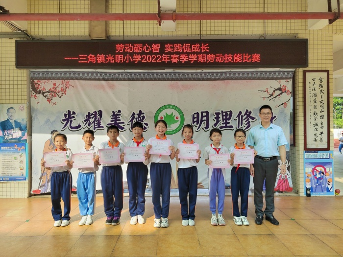 為培養(yǎng)少先隊(duì)員的動(dòng)手、動(dòng)腦和生活實(shí)踐能力,樹(shù)立隊(duì)員“自己的事情自己做”的自主意識(shí),培養(yǎng)隊(duì)員們熱愛(ài)勞動(dòng)的情感,提高勞動(dòng)本領(lǐng),5月6日下午,三角鎮(zhèn)光明小學(xué)舉行2022年春季學(xué)期勞動(dòng)技能大賽。