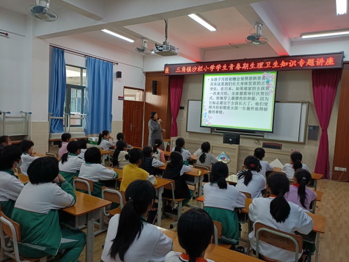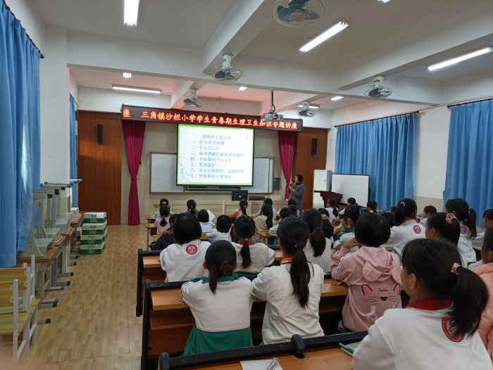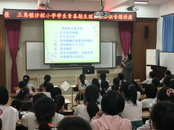 為了使學(xué)生更清晰地了解青春期的生理、心理知識(shí),掌握最基本的青春期健康衛(wèi)生常識(shí),養(yǎng)成良好的衛(wèi)生習(xí)慣,三角鎮(zhèn)沙欄小學(xué)在11月26上午組織五年級(jí)女生開(kāi)展了主題為“我是女生”的生理衛(wèi)生知識(shí)講座。