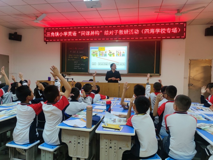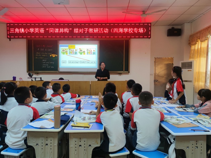 為了深入英語課堂研究,學習人教版新教材,并促進三角鎮(zhèn)各校英語教師之間相互學習,不斷提高教師們的教學水平和業(yè)務素質,三角鎮(zhèn)沙欄小學與四海學校、中心小學、三角小學英語科組聯(lián)合結成教研小組,于11月16日上午在四海學校舉辦本學期課堂教學教研活動。