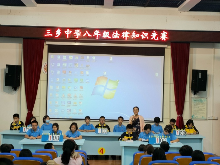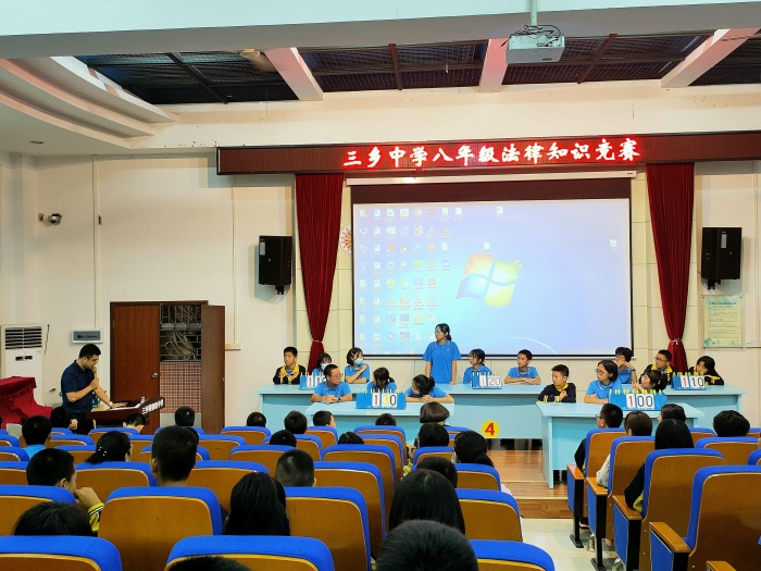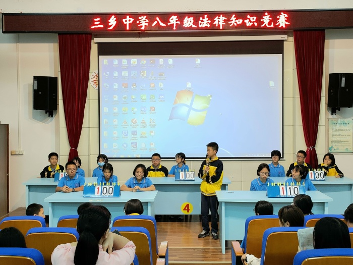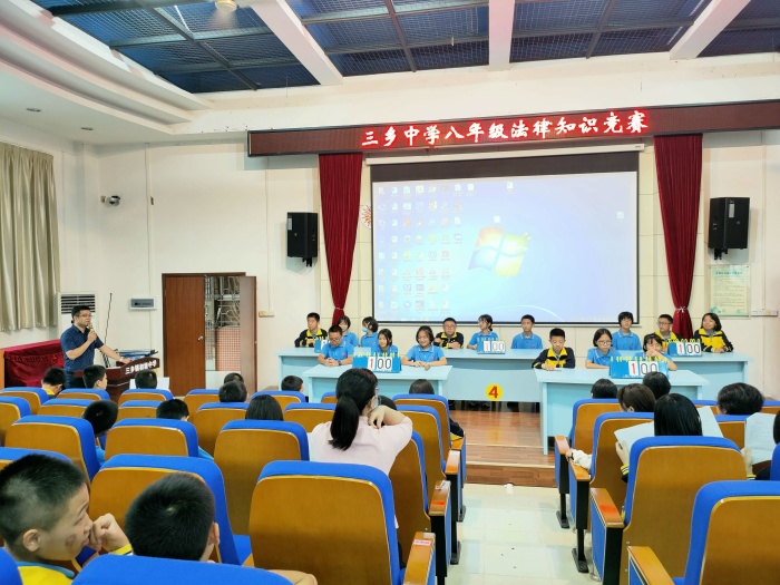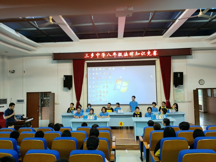 為貫徹“七五”普法規(guī)劃,加強中小學(xué)生憲法、民法典宣傳教育工作,切實防治校園欺凌、未成年性侵害和吸毒販毒等違法事件的發(fā)生,根據(jù)《關(guān)于組織開展中山市第十一屆中學(xué)生法律知識競賽活動的通知》文件要求,三鄉(xiāng)中學(xué)八年級于11月3日進行校級選拔賽。賽程由李堃銘主任主持,楊玉韶主任和馮志寧級長組織協(xié)調(diào)會場安排。