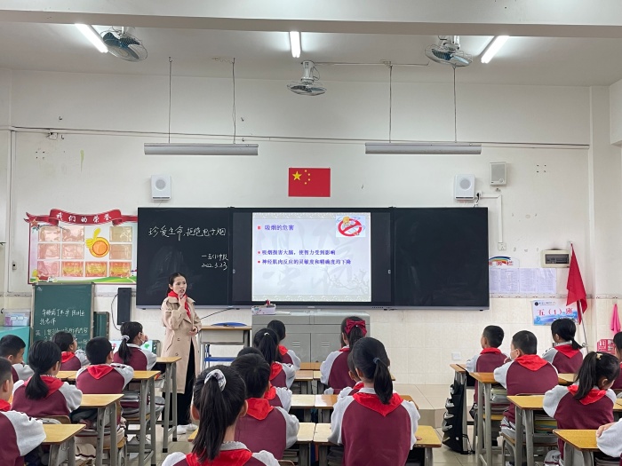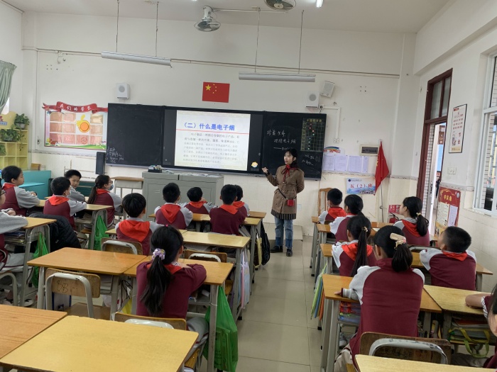 為增強青少年識別抵制電子煙意識和能力,新圩小學組織五六年級學生一起學習了關于電子煙危害的知識。