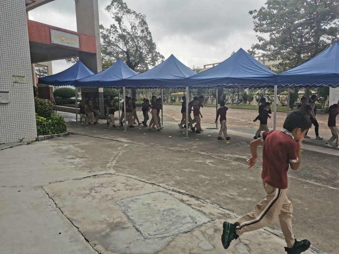 警報(bào)聲一響,模擬有易燃物著火發(fā)出濃煙,學(xué)生馬上雙手捂住口鼻,逃避開校園建筑物,在教師的引導(dǎo)下迅速按指定路線有序疏散,班主任自始至終跟隊(duì),密切關(guān)注演練現(xiàn)場(chǎng),維持活動(dòng)紀(jì)律,防止意外發(fā)生。學(xué)生疏散到指定的安全區(qū)域后,各班班長(zhǎng)迅速集合,清點(diǎn)人數(shù)并向總指揮匯報(bào)情況。雖然天公不作美,剛疏散到一半,馬上就下起了大雨,但是老師們和同學(xué)們都能沉著冷靜、互相合作,一切行動(dòng)聽從指揮,有序到達(dá)能避雨的地方排好隊(duì),不慌亂,以較快的速度,圓滿地完成了此次緊急疏散的演練任務(wù)。