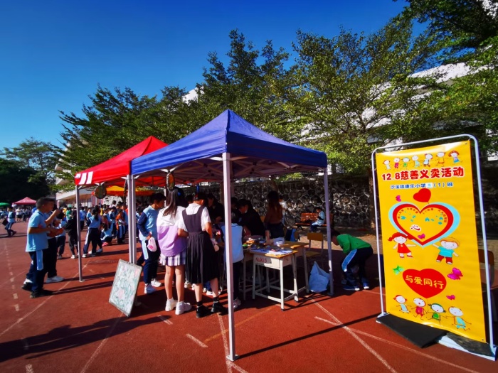 樂善好施、行善積德,歷來是中華民族的優(yōu)良傳統(tǒng)美德。中山沙溪12?8慈善籌款活動在黨委政府的領(lǐng)導(dǎo)下,已經(jīng)成為沙溪人民寶貴的社會精神財(cái)富。為了積極響應(yīng)今年——“情傾隆都,愛滿沙溪”12?8慈善籌款活動的號召,弘揚(yáng)樂善好施的傳統(tǒng)美德。11月26日下午,冬日暖陽,愛心飛揚(yáng)。中山沙溪康樂小學(xué)在運(yùn)動場舉行了“我是優(yōu)秀個(gè)體戶,我是未來企業(yè)家”的慈善義賣籌款活動。