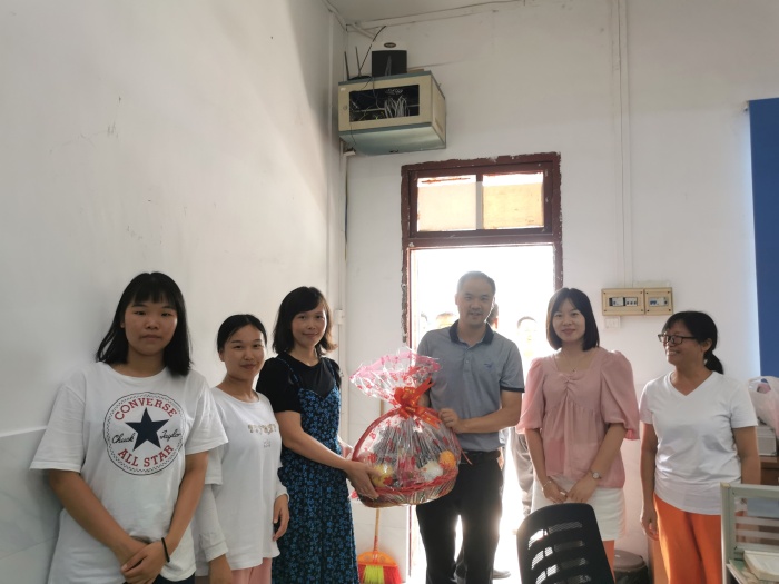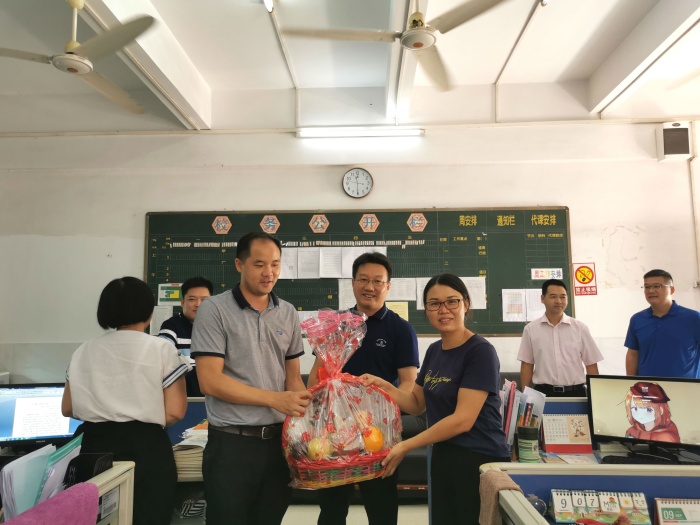 最后,鎮(zhèn)領(lǐng)導(dǎo)一行還攜著慰問(wèn)品到每個(gè)辦公室慰問(wèn)各位老師,向老師們致以節(jié)日的祝福和誠(chéng)摯的問(wèn)候。