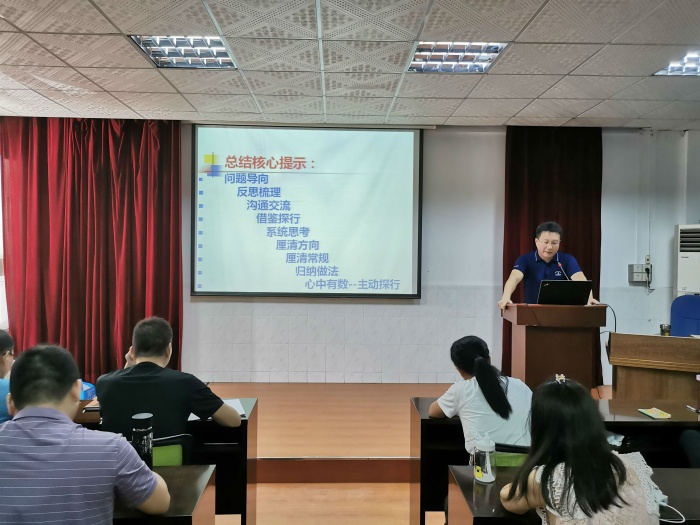 吳偉標校長在活動中首先明確了此次培訓(xùn)的目的和意義,對教師們寄予了衷心祝愿和殷切期望,希望教師們學(xué)會系統(tǒng)思考,做到胸懷大局、守土有責(zé),互補互助,促進自我完善,促進學(xué)校和教師個體內(nèi)涵發(fā)展。