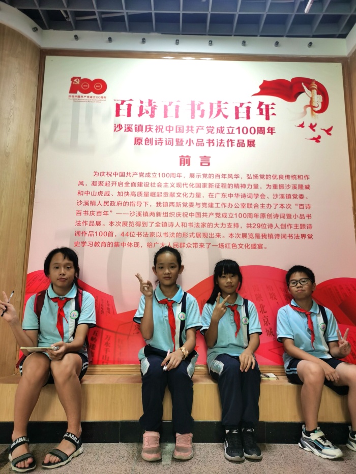 在慶祝中國共產(chǎn)黨成立100周年之際,沙溪鎮(zhèn)文化中心展覽館舉行了“百詩百書慶百年·沙溪鎮(zhèn)兩新組織慶祝中國共產(chǎn)黨成立100周年原創(chuàng)詩詞暨小品書法作品展”。7月2日下午,康樂小學(xué)袁蘭芬老師帶領(lǐng)四名美術(shù)興趣小組的學(xué)生前往參觀學(xué)習(xí)。
