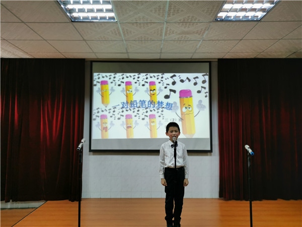 參賽節(jié)目是學(xué)生與指導(dǎo)老師精心篩選,有春風(fēng)點(diǎn)綴夢之足跡的,如“我想”、“我想長大”、“彩色的夢”、“一支鉛筆的夢想”等;有夏日奏出感恩強(qiáng)音的,如“我驕傲,我是中國人”、“老師,我愛您”、“感謝”、“我愛我的祖國”等;有秋葉藏著收獲喜悅的,如“秋天的雨”、“聽聽,秋的聲音”、“秋之美”等;還有冬雪涌動(dòng)生命氣息的,如“生命!生命!”、“白樺”等;還有中華傳統(tǒng)經(jīng)典文學(xué)等。內(nèi)容的精彩不如學(xué)生現(xiàn)場演繹精彩,在主持人宣布開始后,節(jié)目精彩呈現(xiàn),報(bào)告廳不時(shí)傳來陣陣的喝彩聲和熱烈的掌聲。先由一年級(jí)童音傳儒的“生命!生命”開始,臺(tái)下的師生無不欣賞她小小年紀(jì)就有如此非凡表現(xiàn)力;接下來的同學(xué)表現(xiàn)出驚人的朗誦水平,全場學(xué)生都坐不住了,時(shí)而不時(shí)在引起了下面觀眾一陣歡呼,甚至站起來一起為他們打氣。臺(tái)上激情高昂的朗誦、傳神的動(dòng)作與臺(tái)下火熱的氛圍,形成“童音軟儒傳風(fēng)骨,康樂之星發(fā)強(qiáng)音”的多彩畫卷。