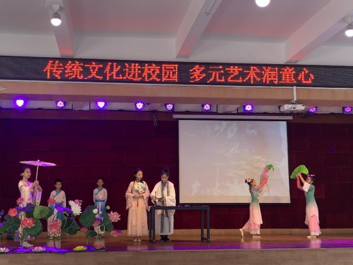 何校長對學校的歷史淵源進行了精彩的解說,接著大家在禮堂欣賞了精彩詩詞節(jié)目——《愛蓮說》。該節(jié)目體現(xiàn)了龍頭環(huán)村的文化底蘊,將周氏之祖周敦頤先生高潔的品格,融于詩詞舞樂之中,讓大家在美的體驗中感受傳統(tǒng)文化的魅力。同學們精彩的表現(xiàn)得到督導專家的積極肯定。接著,在何校長的指引下,督導組在學校足球場欣賞了一出別出心裁的民族舞蹈《瑤山趣娃》。舞蹈體現(xiàn)了傳統(tǒng)文化博大的包容性,也是龍頭環(huán)學校多元藝術理念的最佳體現(xiàn)。