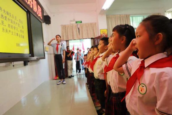 最后,黨組織代表黃賢軍校長為新隊(duì)員們送上溫情的祝福:“入隊(duì)就是一次理想啟航,戴上紅領(lǐng)巾就意味著自己多了一份責(zé)任,希望你們今后努力學(xué)好文化知識(shí),用優(yōu)秀少先隊(duì)員的標(biāo)準(zhǔn)嚴(yán)格要求自己,為中隊(duì)爭光,為中心小學(xué)爭光,為中國少年先鋒隊(duì)爭光!”