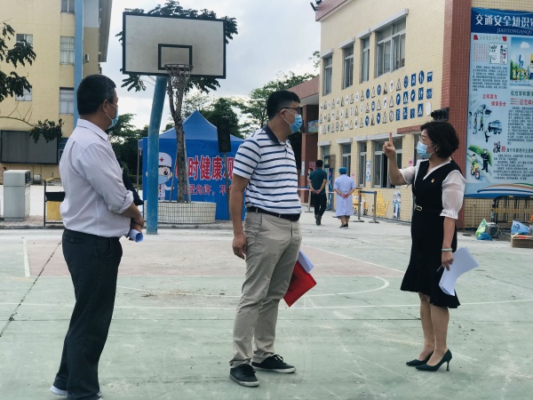 為貫徹落實(shí)中山市春季師生返校的驗(yàn)收工作要求,結(jié)合神灣中心小學(xué)提交的第三批學(xué)生返校申請,5月6日下午,由神灣鎮(zhèn)黨委委員張寧溥、教育事務(wù)指導(dǎo)中心主任朱寶明、鎮(zhèn)疾控中心副所長陸志良、食藥監(jiān)所所長韓華彰、社區(qū)衛(wèi)生服務(wù)中心主任馮君玲聯(lián)合組成的師生返校評(píng)估驗(yàn)收工作組,抵達(dá)神灣中心小學(xué),開展了開學(xué)準(zhǔn)備工作的檢查與驗(yàn)收工作。