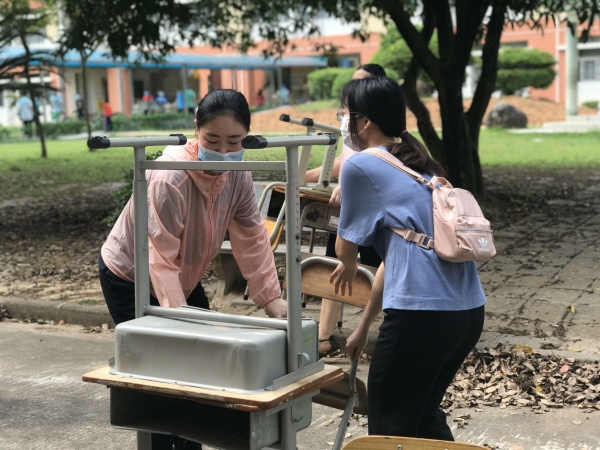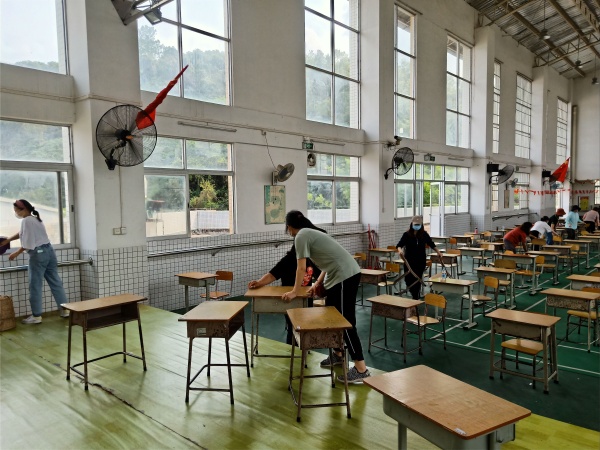 學(xué)校分別召開了行政會議、疫情防控會議,布置相關(guān)準(zhǔn)備工作,合力完善校園清潔消毒工作部署,統(tǒng)一安排、協(xié)同分工,明確各級組負(fù)責(zé)的工作內(nèi)容,專人專責(zé),動員全體教師回校并積極參與到校園消殺工作中來。在工作小組及各年級組長的指導(dǎo)帶領(lǐng)下,大家兵分多路,按照不同學(xué)段、不同批次,進(jìn)行了班級課室桌椅的清洗和搬運(yùn),嚴(yán)格規(guī)范桌椅的消毒、數(shù)量限制與擺放,打造示范課堂。此外,為切實(shí)落實(shí)好疫情防控中“錯峰就餐”、“分批活動”的要求,學(xué)校動員男教師清理食堂二樓舞蹈室,臨時安置學(xué)生分批就餐點(diǎn),減少師生交叉接觸,最大程度上降低感染風(fēng)險,消除安全隱患。與此同時,全校清潔消殺工作也進(jìn)行得如火如荼,校園里隨處可見忙碌的背影。一、二年級教師們打掃課室、擦洗桌椅,讓學(xué)生有干凈明亮的課堂環(huán)境,三年級教師主要負(fù)責(zé)學(xué)校食堂的清理,為學(xué)生提供健康衛(wèi)生的就餐環(huán)境,四、五年級教師負(fù)責(zé)食堂二樓的清理,校內(nèi)外環(huán)境的整治工作由六年級教師完成,看起來浩大繁雜的清殺工程在大家各司其職而又齊心協(xié)力的努力下,順利而又高效完成了校園清殺任務(wù)。