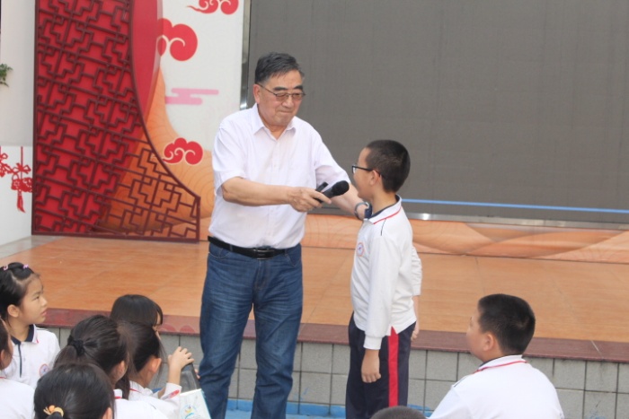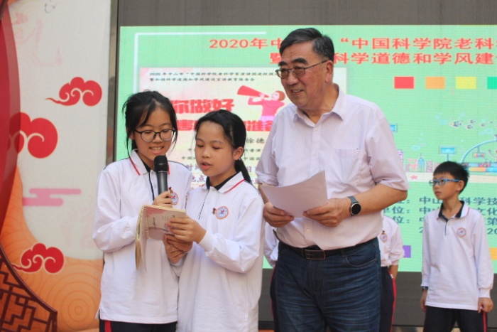 孩子們對(duì)科學(xué)家充滿崇拜,這次能近距離聽(tīng)科學(xué)家講課,都十分興奮和珍惜。有的小朋友向兩位教授送上自己寫(xiě)的一封信;有的向教授深深鞠了一躬;還有的勇敢地拿起話筒,向教授分享自己的心得體會(huì)。梁炳根校長(zhǎng)、李慧冰副校長(zhǎng)和李群嬋主任也代表全校師生,為教授獻(xiàn)上紀(jì)念品,表達(dá)敬意和感謝。