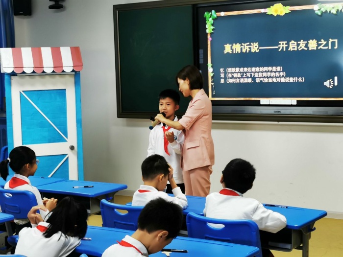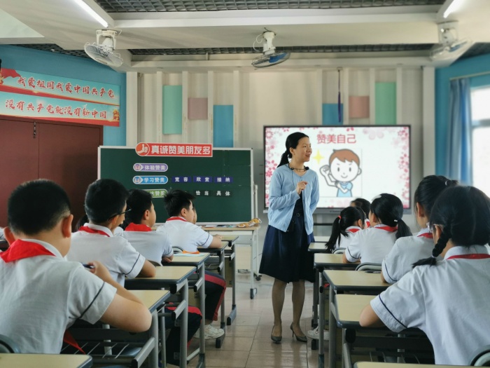 黃秋瑜老師以“心理小劇場(chǎng)”導(dǎo)入,激發(fā)學(xué)生興趣,讓學(xué)生在游戲中引起共鳴。黃老師設(shè)計(jì)了四個(gè)教學(xué)環(huán)節(jié):一是“體驗(yàn)贊美”;二是“學(xué)習(xí)贊美”;三是“表達(dá)贊美”;四是“傳播贊美”,環(huán)環(huán)相扣,層層遞進(jìn),深入淺出地引導(dǎo)學(xué)生體驗(yàn)被贊美和贊美別人的愉悅心情,學(xué)會(huì)用欣賞、接納品質(zhì)與人交往,用真誠(chéng)、恰當(dāng)?shù)恼Z(yǔ)言表達(dá)贊美,最后將贊美運(yùn)用到日常生活中,讓贊美成為一種習(xí)慣。在整個(gè)教學(xué)過程中,黃老師教態(tài)親切,相機(jī)引導(dǎo),點(diǎn)評(píng)及時(shí),學(xué)生受益良多。這節(jié)課也得到了以市教研員梁劍玲老師為首的聽課老師們的一致好評(píng)。
