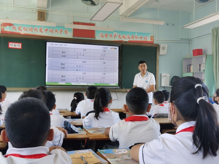陳建明副校長(zhǎng)利用前置探究單進(jìn)行課前探究,讓孩子提前感知可能性大小的核心知識(shí)。整個(gè)公開課陳建明副校長(zhǎng)用有趣的摸球游戲貫穿全課,引導(dǎo)學(xué)生通過猜想、操作、驗(yàn)證,進(jìn)而總結(jié)規(guī)律,讓學(xué)生在充滿好奇的游戲中興高采烈地主動(dòng)思考、探究新知。在課堂實(shí)踐環(huán)節(jié),陳建明副校長(zhǎng)還引導(dǎo)學(xué)生聯(lián)系實(shí)際,發(fā)現(xiàn)藏在生活中的可能性大小的現(xiàn)象,并運(yùn)用于實(shí)際,獨(dú)立設(shè)計(jì)抽獎(jiǎng)游戲,且介紹設(shè)計(jì)思路,讓學(xué)生在互相評(píng)價(jià)中,實(shí)現(xiàn)思維的碰撞,培養(yǎng)學(xué)生的核心素養(yǎng),真正實(shí)現(xiàn)了《新課標(biāo)》中“培養(yǎng)學(xué)生用數(shù)學(xué)的眼光觀察現(xiàn)實(shí)世界;用數(shù)學(xué)的思維思考現(xiàn)實(shí)世界;用數(shù)學(xué)的語(yǔ)言表達(dá)現(xiàn)實(shí)世界”的核心目標(biāo)。陳建明副校長(zhǎng)親切、幽默、機(jī)智的課堂教學(xué)風(fēng)格,深受學(xué)生喜愛,同時(shí)得到了中山市教研室小學(xué)數(shù)學(xué)教研員劉燕老師以及聽課老師的高度認(rèn)可。