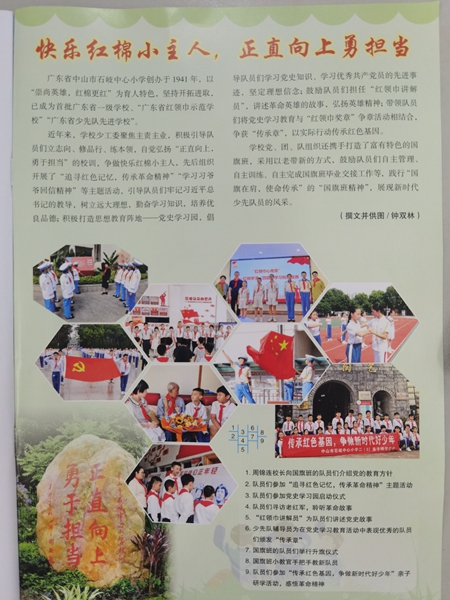 在2022年5月,國家級(jí)教育期刊《輔導(dǎo)員》雜志(下半月刊)以《快樂紅棉小主人 正直向上勇?lián)?dāng)》為題對中山市石岐中心小學(xué)進(jìn)行了專題報(bào)道,介紹了學(xué)校近年來少先隊(duì)建設(shè)的經(jīng)驗(yàn)和成效。
