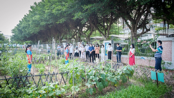 活動伊始,一行人在三鄉(xiāng)鎮(zhèn)載德小學(xué)毛義祥校長的帶領(lǐng)下參觀了該校的勞動教育實(shí)踐基地。毛校長向大家介紹了勞動教育實(shí)踐基地的建設(shè)理念、建設(shè)過程和建設(shè)成果?;氐氖吖?、花卉生機(jī)勃勃,長勢喜人,勞動教育成果扎實(shí)可見。