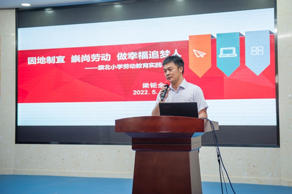 中山市大涌鎮(zhèn)旗南小學(xué)梁鉅全校長則作了《因地制宜,崇尚勞動,做幸福追夢人》的專題報告。他從學(xué)校傳承學(xué)生良好習(xí)慣,體驗(yàn)勞動;掌握種植技能,學(xué)會勞動;豐富勞動陣地,熱愛勞動;全面宣傳展示,享受勞動等方面分享了學(xué)校在勞動教育的做法和經(jīng)驗(yàn)。此外,他還提出了要進(jìn)一步加強(qiáng)勞動教育與德、智、體、美各育有機(jī)的整合,進(jìn)一步研發(fā)校本勞動教材等后續(xù)發(fā)展方向。