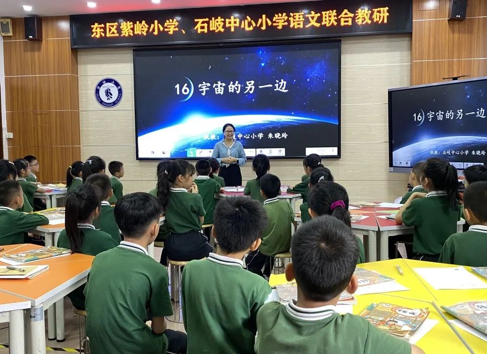 首先,朱曉玲老師和紫嶺小學三(1)班的同學們一起上了研討課——《宇宙的另一邊》。朱老師從文本出發(fā),用親切的、啟發(fā)性的語言,引領同學們走進想象的世界,體會了想象的神奇,還帶領同學們發(fā)揮想象創(chuàng)造了一個又一個神奇的世界,感受了想象的魅力。