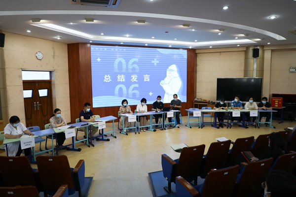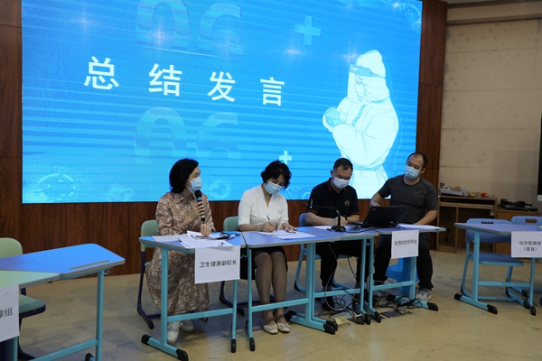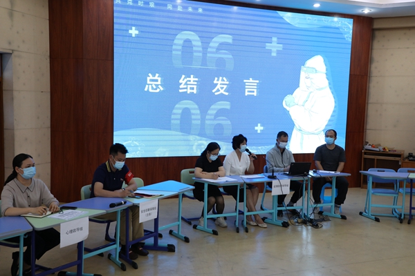 總結(jié)階段,學(xué)校衛(wèi)生健康副校長(zhǎng)肖小華充分肯定了本次演練的效果。她認(rèn)為本次演練能按照相關(guān)文件要求,涵蓋特殊情境下應(yīng)急處置的關(guān)鍵環(huán)節(jié),也能按照預(yù)案迅速啟動(dòng)校內(nèi)應(yīng)急處置機(jī)制,有詳細(xì)的任務(wù)和分工,還關(guān)注到了流調(diào)、轉(zhuǎn)運(yùn)、在線教學(xué)開(kāi)展、后勤保障、心理疏導(dǎo)與家校溝通等方方面面的重點(diǎn)環(huán)節(jié)。學(xué)校在組織、實(shí)施疫情防控應(yīng)急處置桌面演練過(guò)程中表現(xiàn)出了很強(qiáng)的執(zhí)行力、科學(xué)性、專業(yè)性和可操作性。希望在接下來(lái)的工作中,進(jìn)一步加強(qiáng)部門(mén)間的聯(lián)動(dòng),優(yōu)化各部門(mén)處置流程;細(xì)化工作職責(zé),做到“責(zé)任到崗、任務(wù)到人”;建議學(xué)校要思考極端情境下,非寄宿制學(xué)校的后勤保障方面面臨的嚴(yán)峻挑戰(zhàn)。