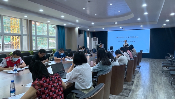 研修活動(dòng)分為兩個(gè)部分。首先陳姍姍老師進(jìn)行《記錄·反思·成長(zhǎng)》為主題的隨筆撰寫(xiě)專題講座。陳老師以自己隨筆撰寫(xiě)的經(jīng)歷深入淺出地講解了隨筆撰寫(xiě)的方法和技巧。七十多頁(yè)的課件,細(xì)致入微地講解了隨筆寫(xiě)作的意義、困惑和成效,讓研修班成員們甚是佩服,同時(shí)也激發(fā)了大家堅(jiān)持隨筆寫(xiě)作的熱情和進(jìn)行教育研究的熱忱。