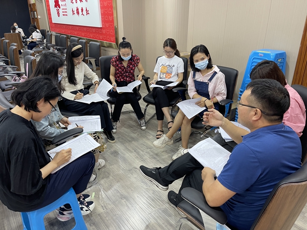 活動(dòng)的第二部分是分小組進(jìn)行課題申報(bào)書(shū)的研磨。郭躍輝老師曾在今年的3月18日給研修班成員做了《教育科研課題選題與申報(bào)》專題講座,激發(fā)了研修班成員對(duì)課題申報(bào)的寫(xiě)作訓(xùn)練熱情。這次,小組成員在專家指導(dǎo)老師的帶領(lǐng)下尋找問(wèn)題,消除困惑,碰撞思維。研磨活動(dòng)結(jié)束后成員紛紛表示自己對(duì)課題有了新的想法,掌握了一定的撰寫(xiě)技巧。