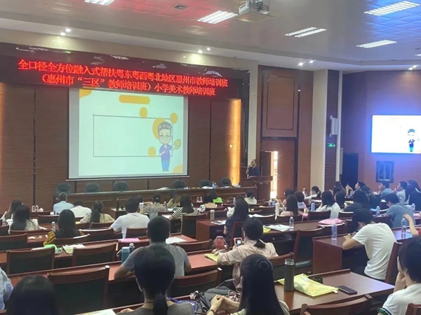 撰稿:龔寶香 審稿:唐鴻雁 二審:黃建喜 三審:周錦連 發(fā)布:區(qū)泳秋 為深入貫徹落實習(xí)近平總書記關(guān)于定點幫扶工作的重要指示精神,落實中山市教育系統(tǒng)東西幫扶協(xié)議。2022年6月16-17日,在中山市教師發(fā)展中心“三名”辦公室的安排下,中山市名教師工作室主持人劉堅老師、中山市石岐中心小學(xué)龔寶香老師等4人,奔赴廣東省惠東縣開放大學(xué),為惠州市“三區(qū)”(粵東粵西粵北)的美術(shù)教師開展講座,進(jìn)行現(xiàn)場課例點評、教學(xué)經(jīng)驗分享,與惠東線上學(xué)員交流等教研活動。