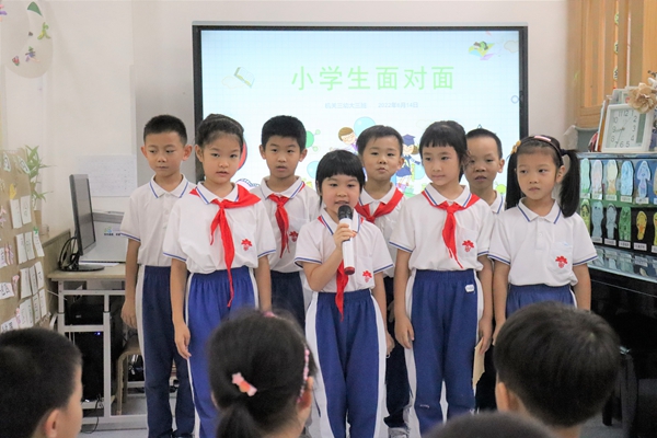 首先,一年級的學生代表來到大三班,為他們認真地解答了之前互贈書信中提到的關于小學生活的疑問。交流過程讓小朋友加深了對小學生活的了解,也激發(fā)了他們對小學的向往和期待。