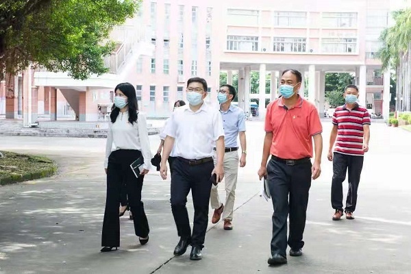 2021年8月30日,坦洲鎮(zhèn)黨委書記張義強、黨委副書記羅慧玲帶領(lǐng)鎮(zhèn)教體文旅局、鎮(zhèn)教育和體育事務(wù)中心負責人到坦洲實驗中學檢查督導校園疫情防控和開學準備工作。張書記一行認真查看了校園疫情防控設(shè)施的設(shè)置和防控物資的儲備情況,聽取了坦洲實驗中學梁格青校長的工作匯報,詢問和了解學校當前存在的問題和面臨的困難,并就有關(guān)問題現(xiàn)場作了指示。