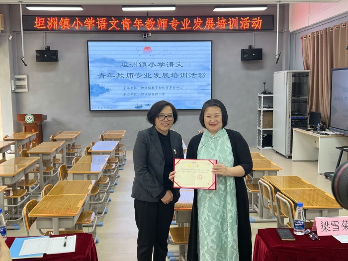 為培養(yǎng)青年教師,坦洲鎮(zhèn)教育和體育事務中心特聘請梁雪菊老師為指導顧問,并頒發(fā)證書?;顒又校滦W李媚老師進行一年級下冊《荷葉圓圓》課例展示。李老師親切的話語,有趣的課前熱身游戲很快吸引了孩子們,課堂上書聲瑯瑯,氣氛活躍,同學們童稚的發(fā)言,引來老師們陣陣笑聲。