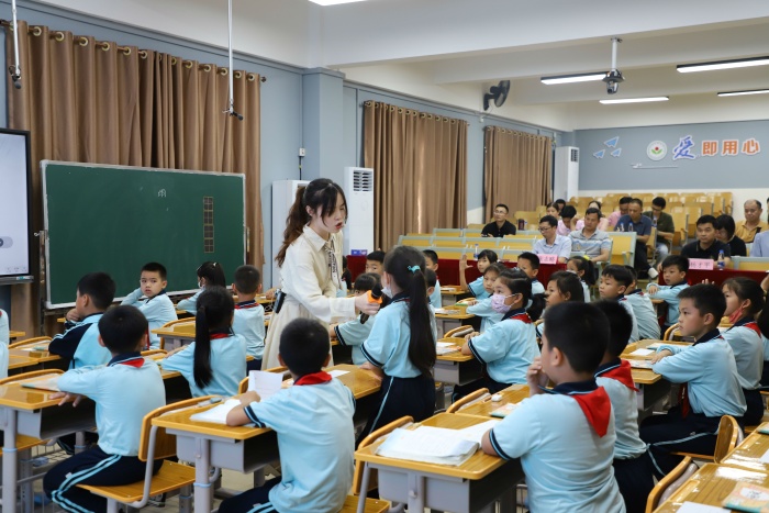 接著由合勝小學(xué)的劉薇老師為來賓們展示了一節(jié)生動有趣的二年級語文課《雷雨》。劉薇老師教態(tài)自然,聲音甜美,注重培養(yǎng)學(xué)生的閱讀能力和發(fā)散思維能力,給來賓們留下了深刻的印象。課后,新塘鎮(zhèn)中心小學(xué)林進(jìn)華副校長、三饒鎮(zhèn)中心小學(xué)邱楚娟副校長與合勝小學(xué)龐琳琳、黃少平老師進(jìn)行了評課交流,大家各抒己見,提出了寶貴的意見和建議。