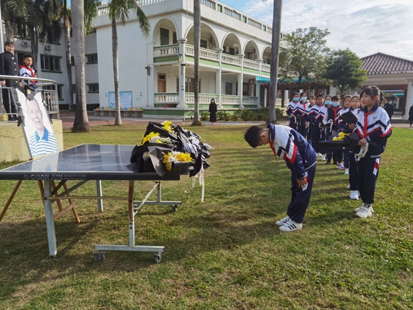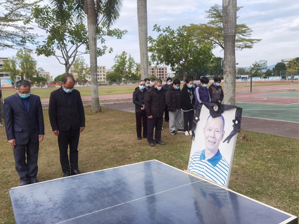 帶著崇敬和思念之情,全校師生為先生默哀一分鐘。隨后,各班學生代表向林東爺爺遺像敬獻鮮花。