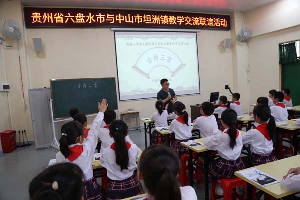 為加強(qiáng)貴州省六盤(pán)水市與中山市坦洲鎮(zhèn)的教學(xué)交流,11月5日上午,在貴州省六盤(pán)水市教育局的組織下,六盤(pán)水市各區(qū)小學(xué)的正副校長(zhǎng)一行12人來(lái)到中山市坦洲鎮(zhèn)。中山市坦洲鎮(zhèn)教體文旅局副局長(zhǎng)韋瑋、楊興,教育和體育事務(wù)指導(dǎo)中心主任張志略、教研專干梁北橋,林東小學(xué)校長(zhǎng)吳維雄等領(lǐng)導(dǎo)熱情接待了遠(yuǎn)道而來(lái)的同行們,并在林東小學(xué)階梯室舉行了教學(xué)交流聯(lián)誼活動(dòng)。來(lái)自坦洲鎮(zhèn)各小學(xué)的語(yǔ)文骨干教師七十余人,也參加了本次活動(dòng)。