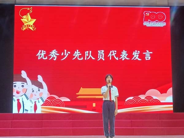 隨后,常老師帶領(lǐng)新隊(duì)員們?cè)陉?duì)旗下莊嚴(yán)宣誓。新隊(duì)員代表倪宸和老隊(duì)員代表賀晨晞兩位隊(duì)員分別進(jìn)行了發(fā)言。他們都表達(dá)了對(duì)少先隊(duì)組織的擁護(hù),在黨的教導(dǎo)和少先隊(duì)組織的呵護(hù)下好好學(xué)習(xí),請(qǐng)黨放心,強(qiáng)國(guó)有我。常老師也對(duì)新隊(duì)員們表示祝賀并提出了殷切的希望,希望新隊(duì)員們?cè)谛切腔鹁嫫鞄玫闹敢?,緊緊銘記先輩的教導(dǎo),以嚴(yán)格的標(biāo)準(zhǔn)規(guī)范自己的行為,做搏擊風(fēng)雨之雄鷹。最后,全體隊(duì)員在大隊(duì)長(zhǎng)邵越同學(xué)的帶領(lǐng)下齊聲呼號(hào)。