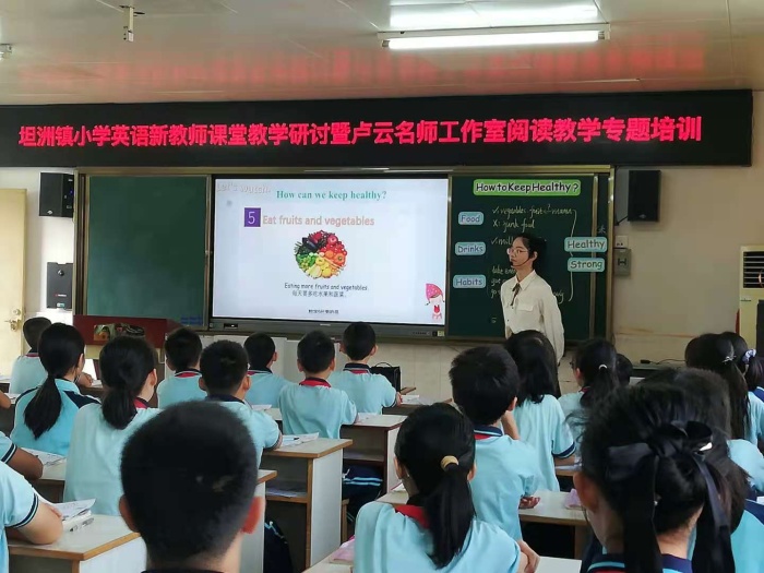 研討活動(dòng)伊始,坦洲鎮(zhèn)安阜小學(xué)的陳柯萱老師帶來一節(jié)六年級的閱讀教學(xué)課《How to Keep Healthy》。陳老師上課思路清晰、語音清楚、思維敏捷、循循善誘,學(xué)生興趣濃厚,取得了良好的教學(xué)效果。緊接著,十四村小學(xué)的陳映希老師帶來一節(jié)六年級的英語繪本課《Transport Trouble》。在陳老師精細(xì)的教學(xué)設(shè)計(jì)和恰到好處的引導(dǎo)下,孩子們積極思考,躍躍欲試,踴躍回答問題,給與會的老師呈現(xiàn)了一節(jié)精彩的繪本教學(xué)課。