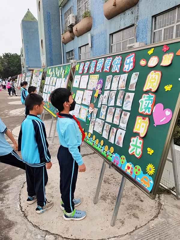 本次活動,每個(gè)班級均結(jié)合已經(jīng)開展的21天閱讀挑戰(zhàn)活動,倡議學(xué)生走進(jìn)圖書館,開展班級讀書漂流活動、開展親子共讀活動、師生齊讀一本書活動,鼓勵(lì)學(xué)生多向周圍的同學(xué)和老師推薦好書,每班都評選出班級“讀書小明星”。語文老師和同學(xué)們精心設(shè)計(jì)班級展板,展現(xiàn)班級的讀書氛圍與成果,讓整個(gè)校園書香四溢。