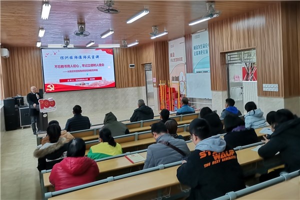 為進(jìn)一步提升教師思想政治素質(zhì)和職業(yè)道德水平,12月27日下午,在裕洲小學(xué)一樓階梯室室舉行了“不忘教書(shū)育人初心,牢記立德樹(shù)人使命”——從脫貧攻堅(jiān)視角感受坦洲教育幸福坦洲鎮(zhèn)師德師風(fēng)宣講講座。有幸邀請(qǐng)到坦洲鎮(zhèn)師德師風(fēng)宣講團(tuán)成員、坦洲鎮(zhèn)陽(yáng)光小學(xué)負(fù)責(zé)人鄭訓(xùn)彬到裕洲小學(xué)做宣講講座。
