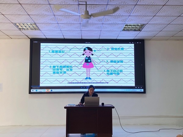 活動的開篇,張主任播放了一個有關(guān)做自信女孩的短片,借此告訴女生們要敢于表現(xiàn)自己,對自己要充滿自信。隨后張主任從“花季青春期”的種種表現(xiàn)入手,激發(fā)學(xué)生的求知欲,進(jìn)而切入到“青春期女生的身體會發(fā)生哪些變化”的相關(guān)知識。在學(xué)生對青春期生理的變化有了一定的了解后,張主任又給學(xué)生講解如何護(hù)理、如何選用衛(wèi)生巾等一些月經(jīng)期護(hù)理的必要常識。通過一系列青春期知識的講授,女生們對青春期有了更深入的了解,對青春期所發(fā)生的種種變化不再迷茫,并且學(xué)會自我保護(hù)。