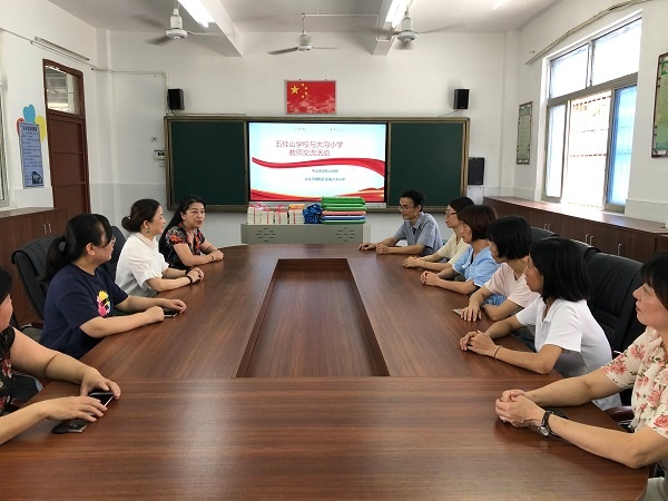 捐贈(zèng)儀式結(jié)束后,雙方行政及教師代表就下學(xué)期幫扶工作展開(kāi)深入交流,對(duì)進(jìn)一步落實(shí)幫扶計(jì)劃達(dá)成了共識(shí),明確了幫扶共建的措施和目標(biāo),確保結(jié)對(duì)幫扶工作的順利開(kāi)展。針對(duì)下一步的幫扶工作,李萌校長(zhǎng)說(shuō):“五桂山學(xué)校將持續(xù)貫徹落實(shí)省教育廳精神,從實(shí)際出發(fā)依據(jù)學(xué)校資源優(yōu)勢(shì),今后擬在學(xué)科管理水平、其它學(xué)科教育教學(xué)、業(yè)務(wù)素質(zhì)、辦學(xué)條件等方面加大幫扶力度,選派優(yōu)秀黨員干部前往大溝小學(xué)開(kāi)展形式多樣的幫扶活動(dòng),邀請(qǐng)大溝小學(xué)的行政老師到五桂山學(xué)校交流學(xué)習(xí),全面落實(shí)幫扶任務(wù)?!?/p>