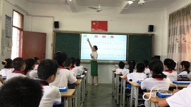 一名黨員就是一面旗幟。畢業(yè)于華南師大的高材生林建紅老師,也是一名共產(chǎn)黨員。為充分發(fā)揮黨員的先鋒模范作用,林老師主動(dòng)請(qǐng)纓參與幫扶。為完成送教任務(wù),她周末認(rèn)真?zhèn)湔n至凌晨,雖路途遙遠(yuǎn)、身體不適,可她堅(jiān)持克服困難,滿腔熱情地給孩子們上了一節(jié)《乃喲乃》口風(fēng)琴教學(xué)課。在此之前,因?yàn)橐咔?,五桂山學(xué)校音樂(lè)老師通過(guò)線上課堂對(duì)大溝小學(xué)的同學(xué)進(jìn)行了口風(fēng)琴吹奏的基礎(chǔ)知識(shí)教學(xué)。此次到了大溝小學(xué),林老師和同學(xué)們都十分珍惜這次面對(duì)面教和學(xué)的機(jī)會(huì)。
