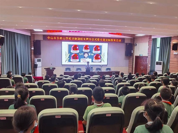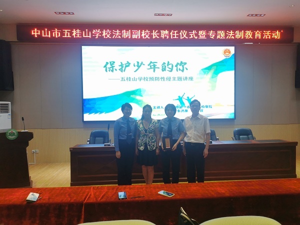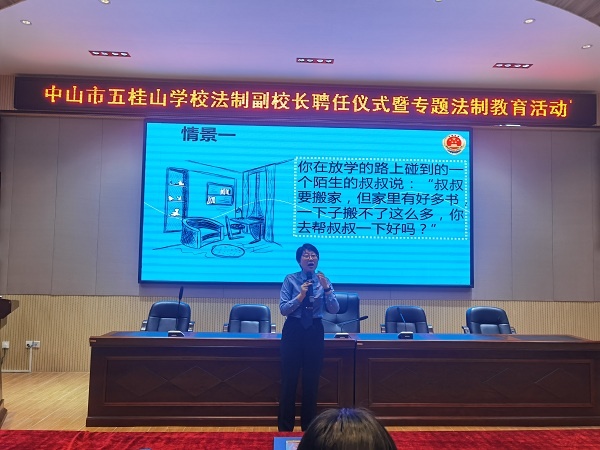 5月24日下午,五桂山學(xué)校在綜合報告廳舉行法治副校長聘任儀式暨專題法治教育活動。中山市第一市區(qū)人民檢察院周子茹檢察官受聘為五桂山學(xué)校法治副校長。活動中,五桂山學(xué)校李萌校長為法治副校長頒發(fā)聘書,并向她表示祝賀和感謝,希望法治副校長關(guān)心支持教育工作,積極開展法治宣傳教育,全面提升五桂山學(xué)校青少年的法律素質(zhì)和綜合素養(yǎng)。