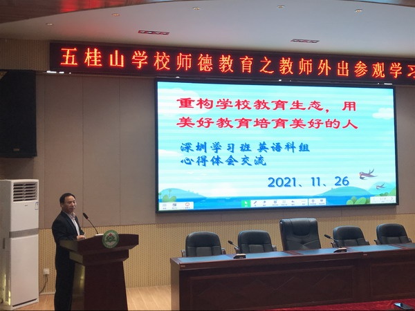 為提高教師的教育教學(xué)水平,豐富校本教研形式,進(jìn)一步強(qiáng)化外出學(xué)習(xí)效果,發(fā)揮外出學(xué)習(xí)教師的輻射、引領(lǐng)作用,做到“部分教師學(xué)習(xí),全體教師受益”,達(dá)到資源共享,共同提高的目的,11月26日下午,五桂山學(xué)校結(jié)合師德教育,在綜合報(bào)告廳召開(kāi)了師德教育之骨干教師深圳參觀學(xué)習(xí)分享會(huì)。會(huì)議由辦公室姚遠(yuǎn)主任主持,五桂山學(xué)校全體教師參加了會(huì)議。