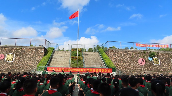 “學校真漂亮!”“校園變美啦!”同學們在看到面貌一新的校園時發(fā)出由衷的感嘆。進教室點名后,同學們在班主任的帶領下來到籃球場,參加新學期開學典禮暨升旗儀式。隨著冉冉升起的國旗,師生們高唱國歌,歌聲激昂澎湃。